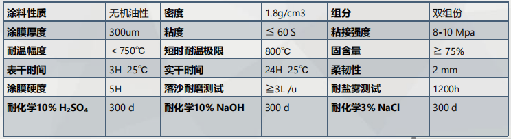 煙氣石墨防腐涂料以改性無機硅、改性樹脂嫁接聚合成膜液,添加納米硅微粉、碳化硅、氮化硼、細晶氧化鋁、 石墨、超細氧化鋅、氧化鈦、陶瓷微珠、微粉氧化鋯等原料進行螯合反應,涂層具有耐溫750℃、表面能低、耐酸 堿腐蝕性高,硬度高,與基體結合力大等綜合優異性能。