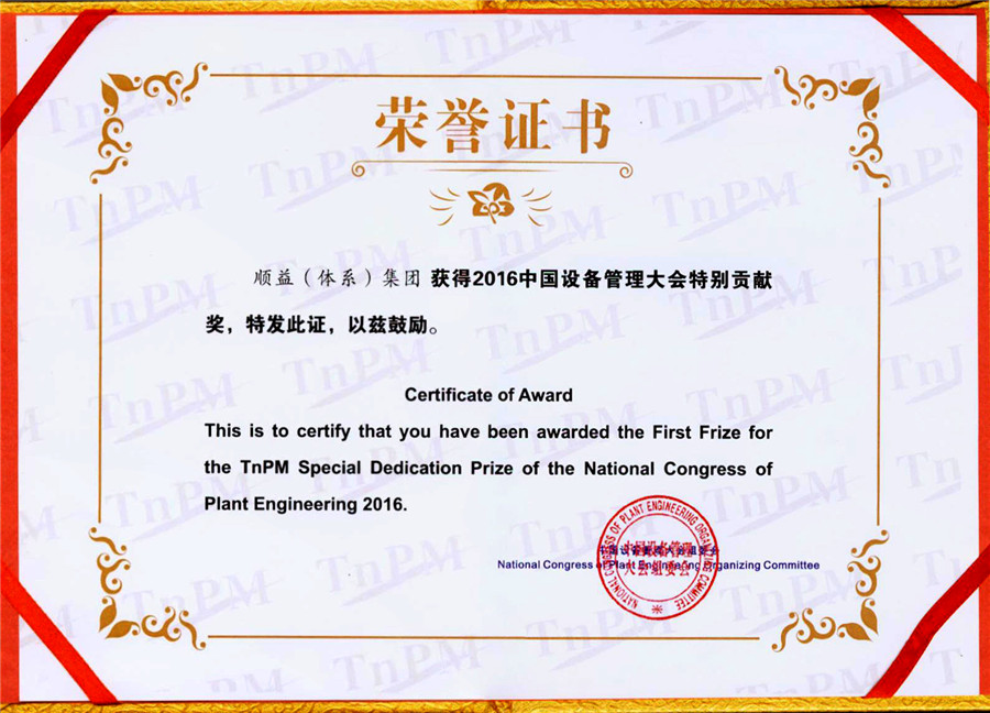 大會(huì)現(xiàn)場(chǎng)還頒發(fā)了中國(guó)TnPM設(shè)備管理功勛獎(jiǎng)、杰出領(lǐng)袖獎(jiǎng)、優(yōu)秀企業(yè)獎(jiǎng),2016中國(guó)設(shè)備管理大會(huì)特別貢獻(xiàn)獎(jiǎng)、中國(guó)TnPM設(shè)備管理創(chuàng)新獎(jiǎng)、發(fā)言嘉賓獎(jiǎng)座。作為本次大會(huì)承辦方的順益體系(集團(tuán))榮獲了TnPM特別貢獻(xiàn)獎(jiǎng)!順益體系(集團(tuán))總裁張建新榮獲“演講嘉賓”獎(jiǎng)座。現(xiàn)場(chǎng)氣氛熱烈!