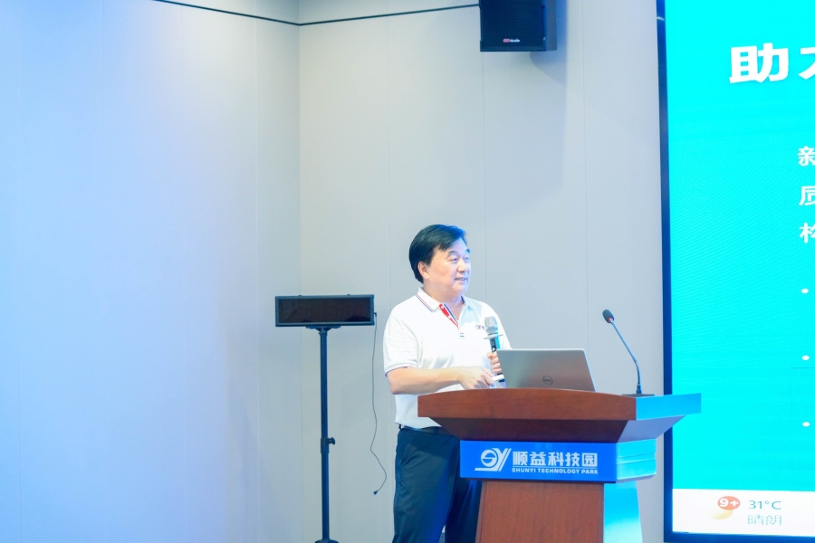 參觀結束后,交流活動在順益科技園多功能會議廳熱烈展開。順益體系(集團)董事長張建新帶來了《推動新材料在工業領域應用創新,助力生產性服務業高質量發展》的主題演講。張總憑借深厚的行業經驗和敏銳的市場洞察力,深入剖析了新材料在工業領域的應用現狀與發展趨勢,分享了順益科技園在推動新材料應用創新方面的成功經驗與實踐案例。