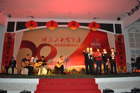 8日晚上7:30整,順益20周年慶典晚會在珠海度假村酒店碧麗宮正式拉開帷幕。不管是暖徹人心的詩朗誦《等待》,火爆熱辣的開場舞《CREZY》,還是柔美的《雙生花》,清耳悅心的古箏曲《高山流水》,詼諧幽默的小品、男扮女裝選秀、牽動人心的抽獎環(huán)節(jié)等等,無不顯示順益人才濟濟。整場晚會下來,現(xiàn)場氣氛都很熱烈。順益由一開始幾個人的小公司,發(fā)展的現(xiàn)在遍布整個中國36個分公司、辦事處,擁有400多位精英的銷售團隊,有領(lǐng)導的高瞻遠矚,更有同事們的傾身投入。就像張總《等待》里的一句臺詞“你們把人生的唯一的一次青春種在了順益這片熱土上,我有責任與你們一起讓它生根、發(fā)芽、茁壯成長”。